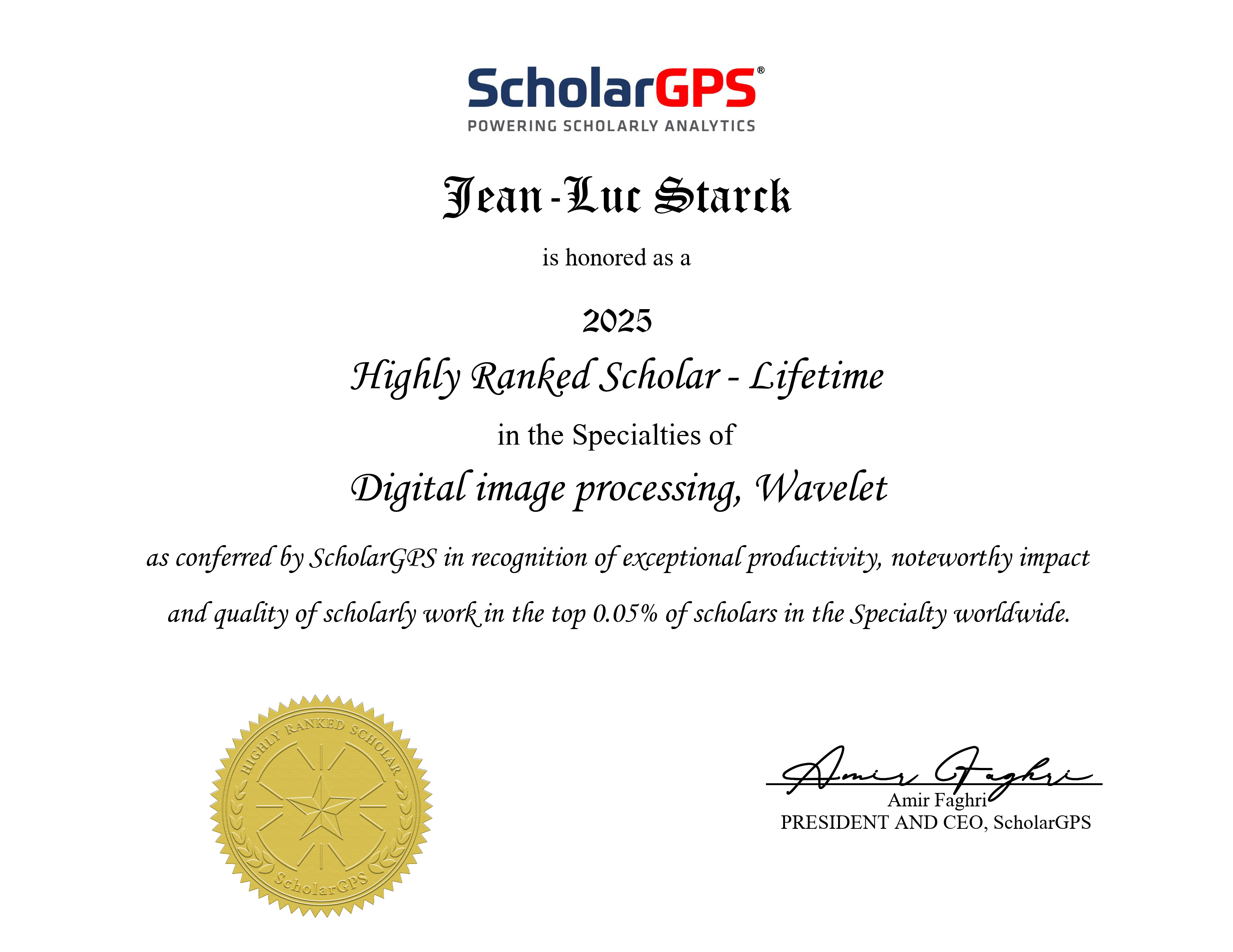 - ScolarGPS Highly Ranked Scholar - Lifetime